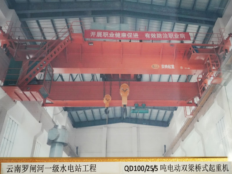云南罗闸河一级水电站工程QD100/25/5吨电动双梁桥式起重机